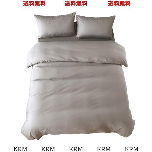 布団カバー ダブル 4点セット寝具カバーセット 綿混 無地 掛け布団カバー ボックスシーツ 枕カバー 洗い替え 速乾 防ダニ(グレー)