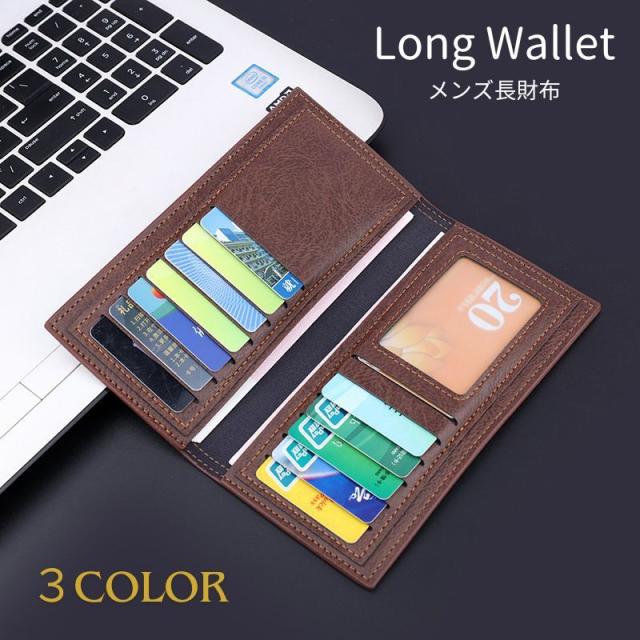 長財布 札入れ メンズ ウォレット ロングウォレット 無地 シンプル ブラウン ブラック PUレザー ビジネス ギフト