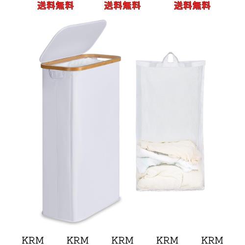 ◆商品名:洗濯かご ランドリーバスケット 洗濯かご 折りたたみ スリムランドリーバスケット容量63L フタ付き 竹製フレーム 折りたためる 防水 洗濯