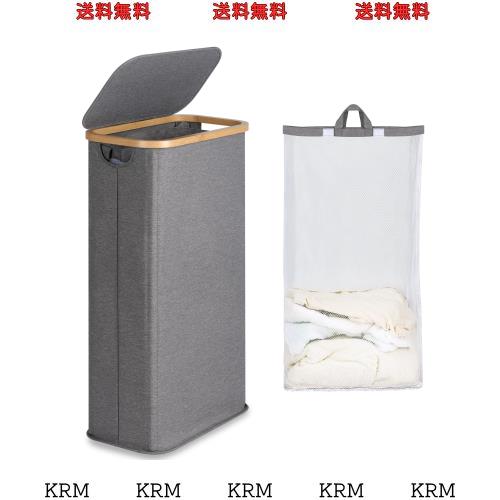 洗濯かご ランドリーバスケット 洗濯かご 折りたたみ スリムランドリーバスケット容量63L フタ付き 竹製フレーム 折りたためる 防水 洗濯