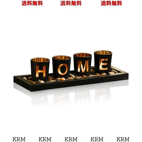 「素晴らしいデザイン」キャンドルホルダー セットはガラス製のキャンドルスタンド4個、トレイ一枚、小石1袋をセットしております。キャンドルホルダーの内装は金色を塗って、火付けた時、光が切り抜いたHOMEの文字を通して輝いていて、雰囲気がレベルアップします。