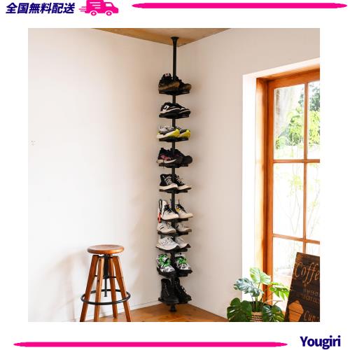 [山善] 突っ張り ラック シューズラック 10段 スリム 玄関 靴 収納 省スペース 実用新案取得済 ワンタッチ突っ張り 幅22×奥行23×高さ19