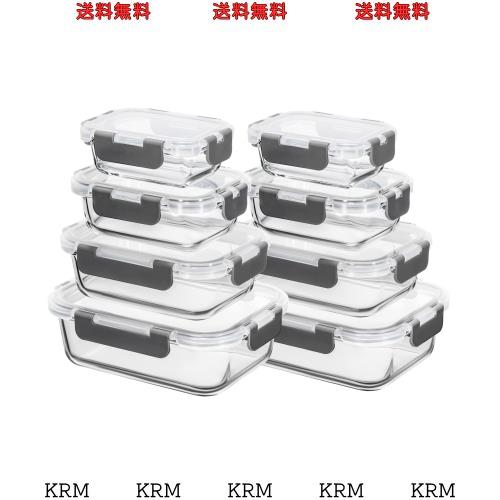 AILTEC 耐熱ガラス 保存容器 8個セット ガラス密閉容器 タッパー レンジ対応 作り置き オーブン 食洗機対応 お手入れ簡単 漏れ防止 積み
