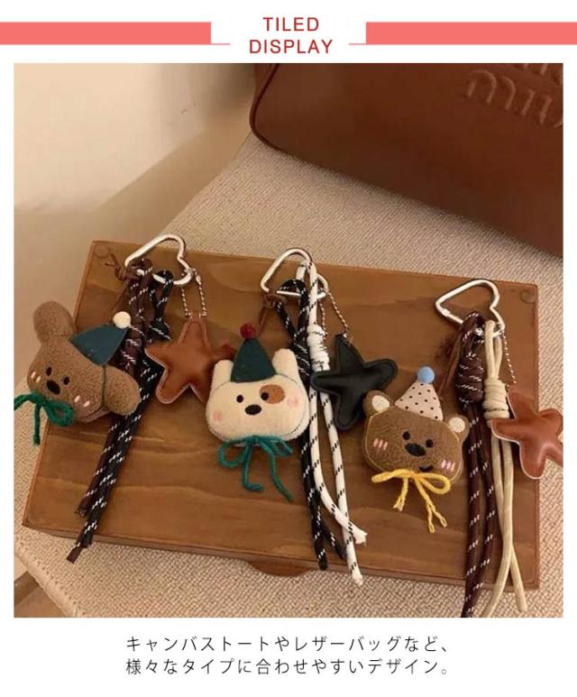 バッグチャーム ぬいぐるみ 可愛い 動物 レディース 韓国ファッション アクセサリー 小物 飾り物 かわいい ファッション雑貨 ポイント キーチャーム キーリング 鞄飾り 熊 犬 リング 吊り下げ ギフト プレゼント 送料無料