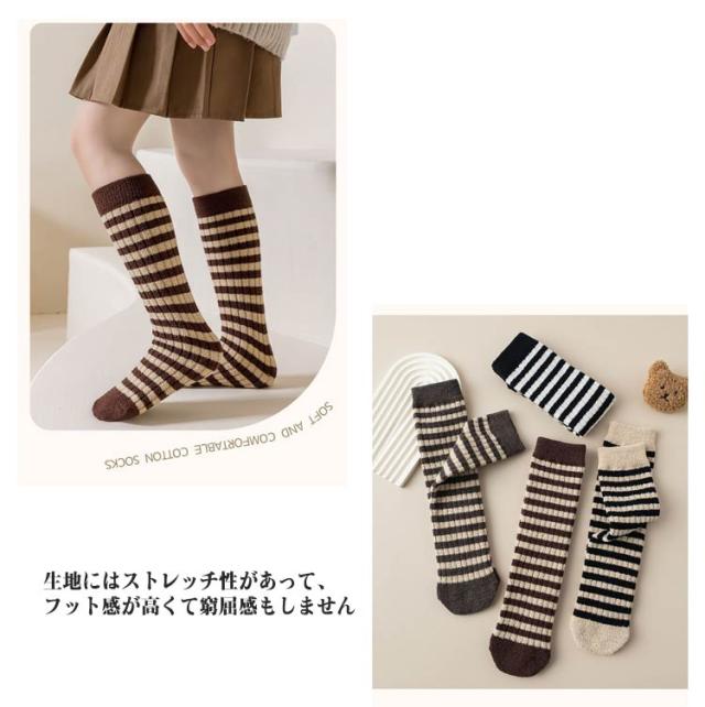 男の子 女の子 小学生 3足セット ハイ 冬 子供 子供 厚手 靴下 ソックス 幼稚園生 秋 あったか 靴下 ハイソックス 男女兼用 ユニセックス 厚手ソックス 色切り替え ストレッチ 冷え対策 ジュニアソックス 男児 女児