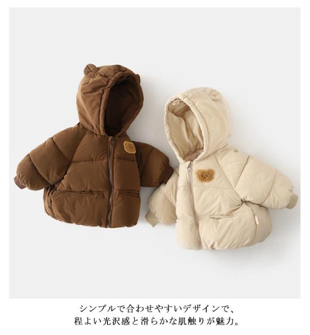 | かわいいくま耳付きのキッズコート。 柔らかい素材を使用して、着心地がいい、通気性・放湿性はもちろん、皮膚に刺激しないから安心〜 シンプルで合わせやすいデザインで、程よい光沢感と滑らかな肌触りが魅力。 ふかふかで軽量の設計で厚重感がなくてお子様も楽々着られます。 サイズは80cmから130cmまで揃い、普段着から通園まで使える一着です。 | |