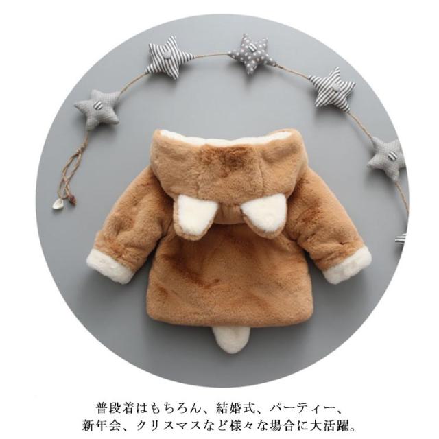 可愛い もこもこ ファーコート 男の子 キッズコート 女の子 尻尾付き 90 ボアコート うさ耳 誕生日 ギフト 80 子供コート 100 110 120 秋冬 冬服