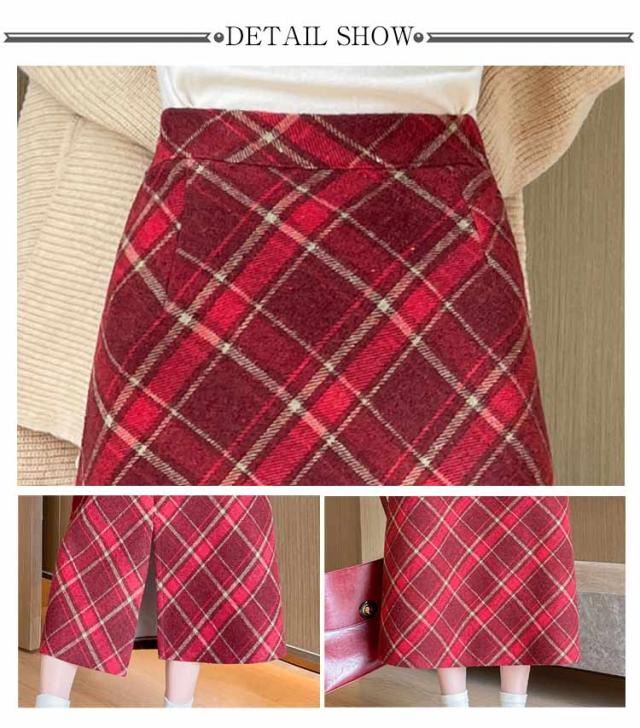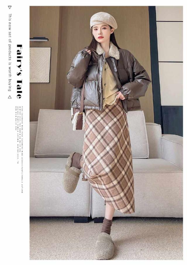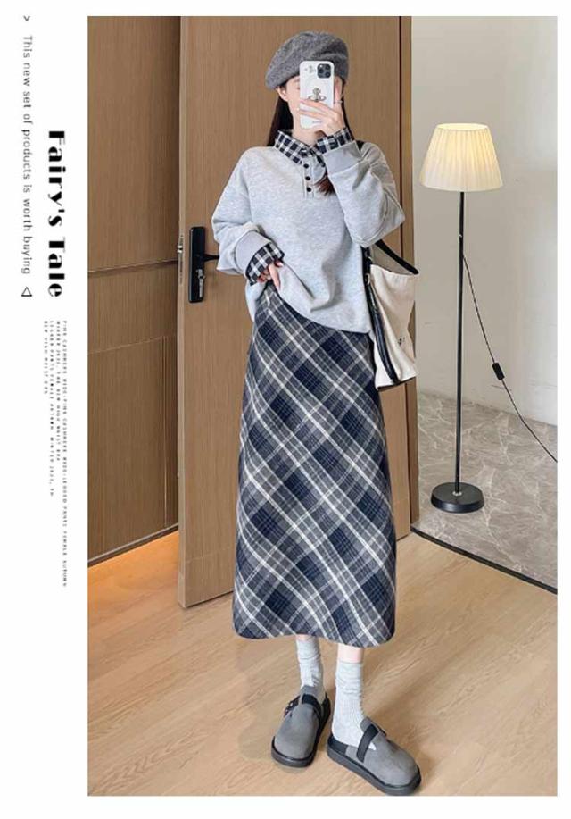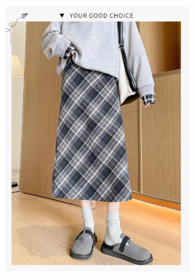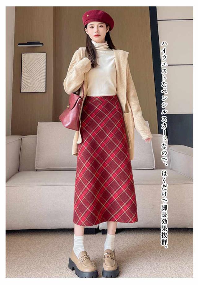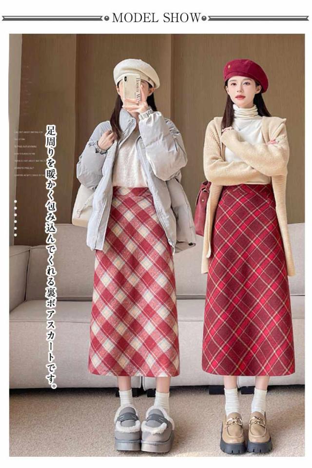 チェックスカート レディース Iライン ロングスカート 裏起毛 通常 秋 冬 暖かい ボトムス タイトスカート 厚手 防寒 ウエストゴム 上品 体型カバー ゆったり 通勤 通学 フォーマル