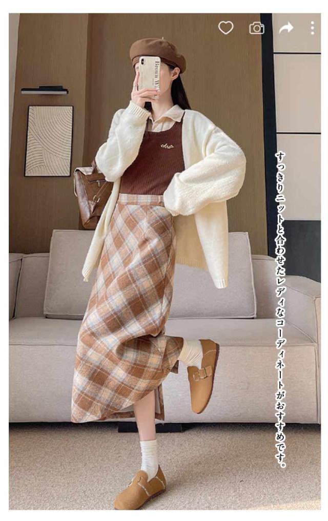 | 大人っぽいペンシルラインのチェックスカート。 足周りを暖かく包み込んでくれる裏ボアスカートです。 ハイウエストなペンシルスカートなので、はくだけで脚長効果抜群。 バックスリットで足さばきしやすくウエストはフラットフロント、タックインも綺麗にきまります。 後ろ半分はゴムのギャザー、裾は後ろにスリットが入りで脚捌きもばっちり。見た目より穿き心地は楽ちんです。 すっきりニットと合わせたレディなコーディネートがおすすめです。 | |