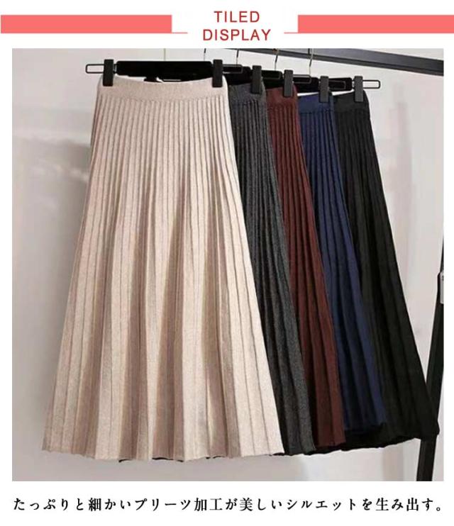 プリーツスカート ニットプリーツスカート スカート ニットプリーツスカート ニット素材 ニットスカート 秋冬 レディース キレイめ ハイウエスト 体型カバー 着?せ フリーサイズ Aラインスカート 無地 プリーツ 冬 シンプル 大人 かわいい 女性 通勤 通学