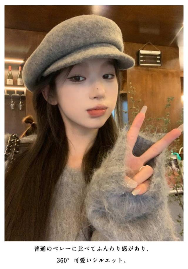 ハット 無地 小顔効果 起毛生地 つば付き 帽子 きれいめ レディース ボリューム感 秋冬 キャップ ベレー ぼうし リブ ベレー帽 ベレー帽 レトロ シンプル ゆったり 大きめ 深め かわいい 大人 女性 暖かい 防寒 通勤 通学 デート