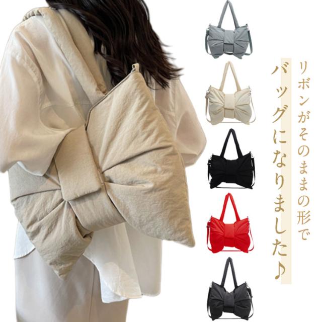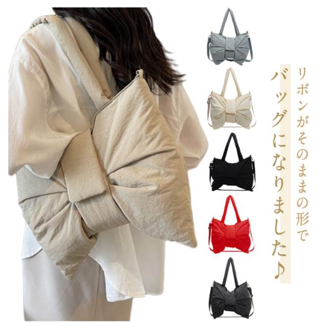 旅行 通勤 リボン型 肩掛け ミニショルダー 大きなリボン トートバッグ 大容量 ファスナー ビッグリボン ふんわり可愛い ショルダーバッグ シンプル トート 通学 斜め掛けバッグ 2way デート 無地 かわいい ギフト プレゼント
