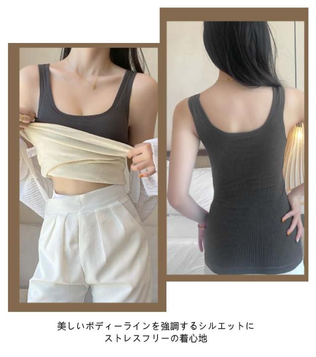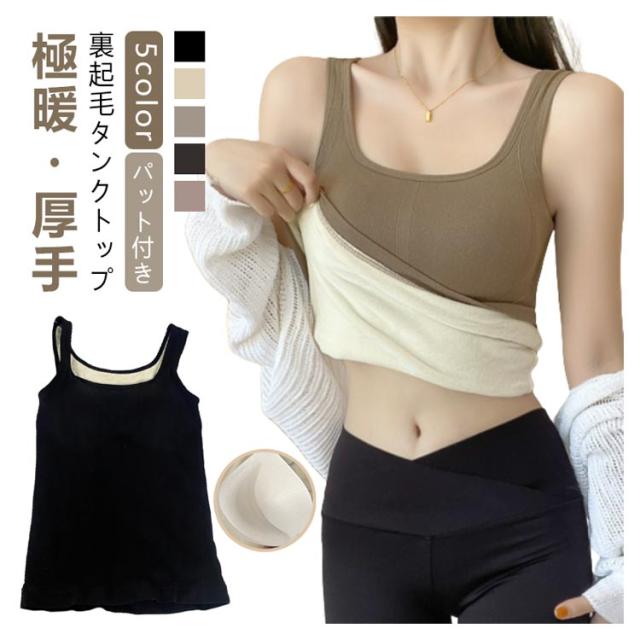 厚手 秋冬 あったかインナー 無地 タンクトップ タンク 暖かい レディース 極暖 パッド付き 部屋着 冷え防止 防寒 トップス 秋 冬 肌着 キャミソール パッド取り外し可能 シンプル 裏起毛タンクトップ タンクトップ 下着 Uネック ストレッチ 伸縮性 寒さ対策 秋冬