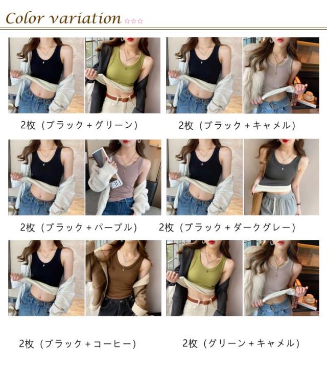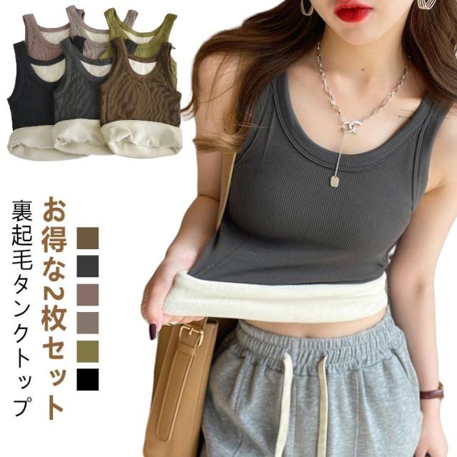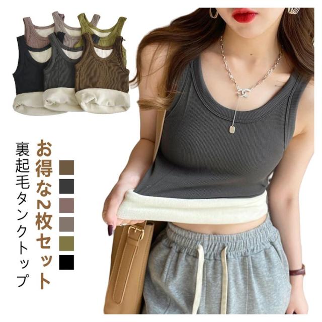 冬 冷え防止 部屋着 裏起毛タンクトップ あったかインナー トップス レディース 無地 極暖 【2枚セット】タンクトップ 防寒 タンク 秋 厚手 肌着 キャミソール 秋冬 暖かい シンプル 裏起毛 下着 Uネック ストレッチ 伸縮性