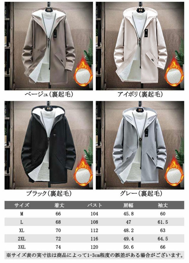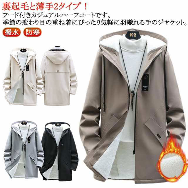 | 裏起毛と薄手2タイプ!フード付きカジュアルハーフコートです。季節の変わり目の重ね着にぴったり気軽に羽織れる手のジヤケット。 シンプルなデザインなので年代間わず愛用して頂けるフアスナータイプのアウター。 丈を長めにコート仕様になっているので、更に防風防寒性がUPしています。 両側にポケットが付いています。 調節可能なプード付き、調節用ブード細で頭に固定させます。風を通しにくい防風効果を施し、紫外線遮断できます。 ロング丈また超軽量素材で、スポーツトレーニング、さまさまなアウトドアシーンで活躍できるシャケントです。カジュアル、通勤通学にピッタリ! | |