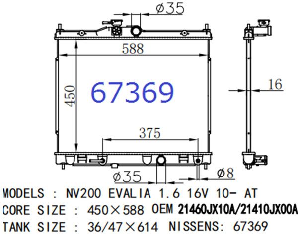 ラジエーター 日産 NV200バネット VM20/M20 AT 2009年10月〜 AP-KBR-0011 67369-16 6736916