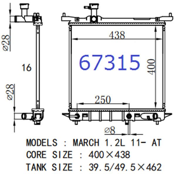 ラジエーター 日産 ノート NE17 HR12DE AT 2012年10月〜2016年06月 AP-KBR-0012 67315-16 6731516