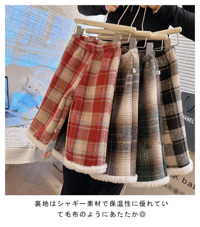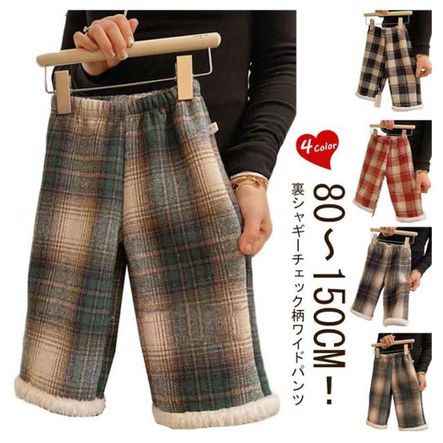 子供服 ロングパンツ 男の子 チェック柄 ふわふわ 厚手 裏起毛 キッズ ワイドパンツ 裏シャギー キッズ服 女の子 キッズ服 長ズボン あったか チェックパンツ ウエストゴム 防寒対策 ジュニア ベビー服 キッズ 秋冬服