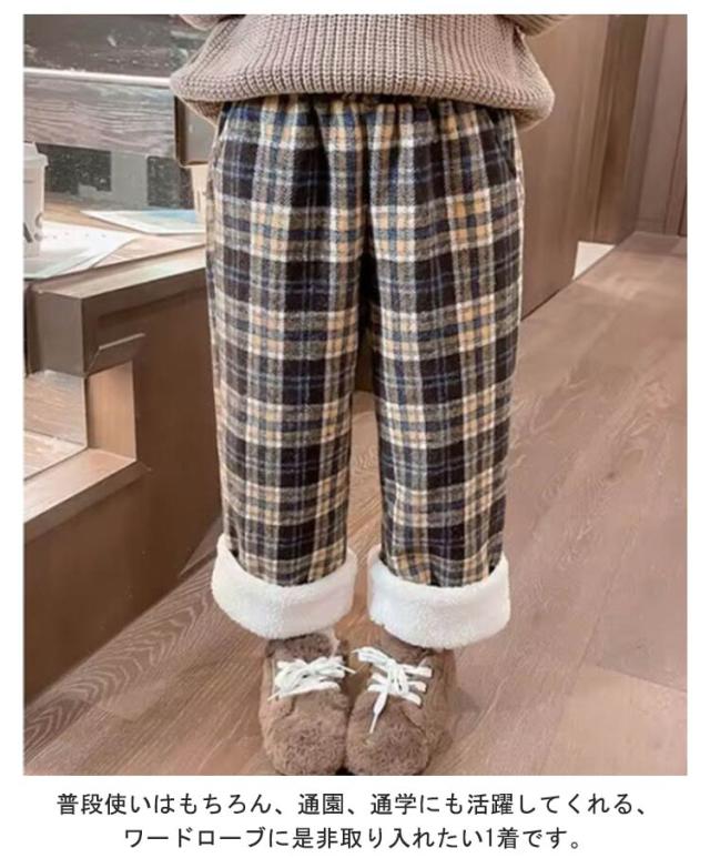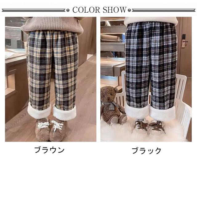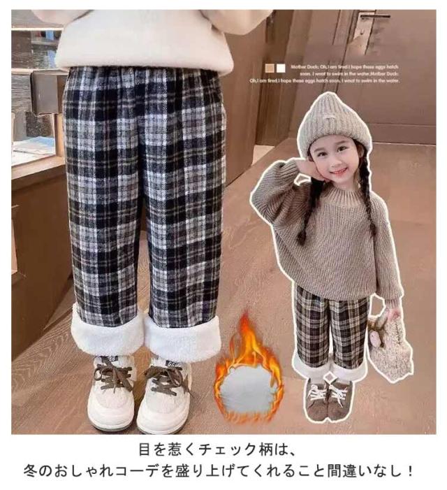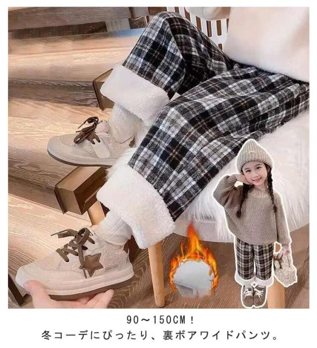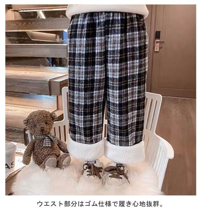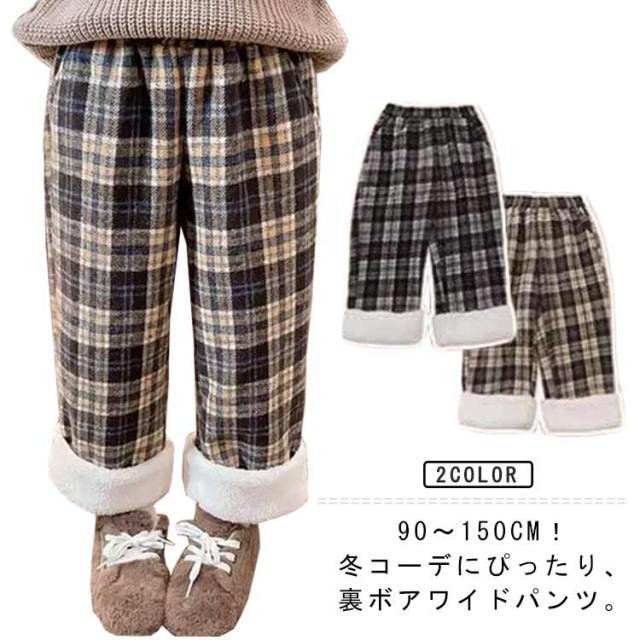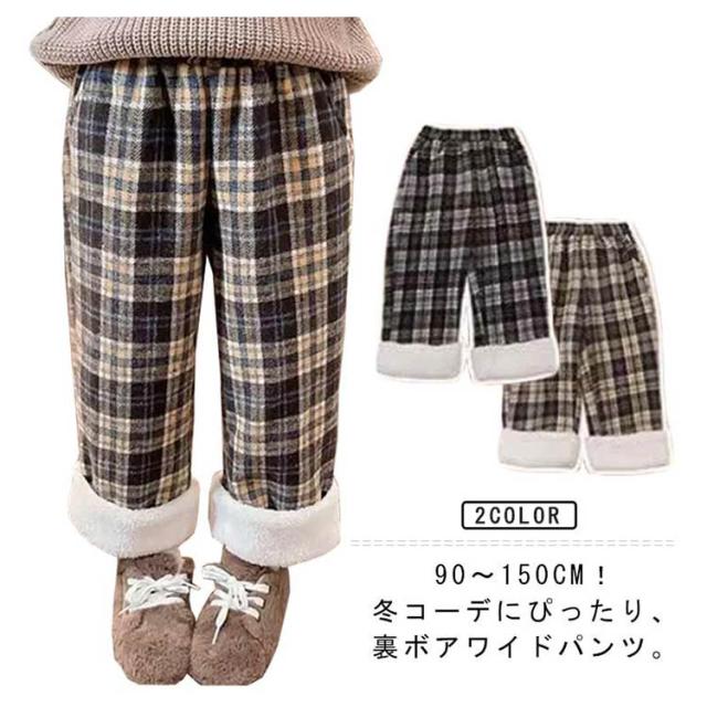 裏起毛 ワイドパンツ 女の子 チェックパンツ 長ズボン ベビー ズボン チェック柄 キッズ ジュニア ロングパンツ 通園 裏ボア ユニセックス 秋服 子供 暖かい あったか ボトムス 子供服 防寒 90 通学 ウエストゴム 冬服 80 100 キッズ 110 120 130 140 150