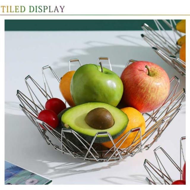 変形 ステンレスバスケット 変形 変化に富む収納かご 折りたたみ フルーツボウル ピクニックバスケット フルーツバスケット フルーツトレイクリエイティブ ステンレス製 バスケット 金属 カゴ 多機能 フルーツバスケット シンプル 錬鉄製フルーツバスケット