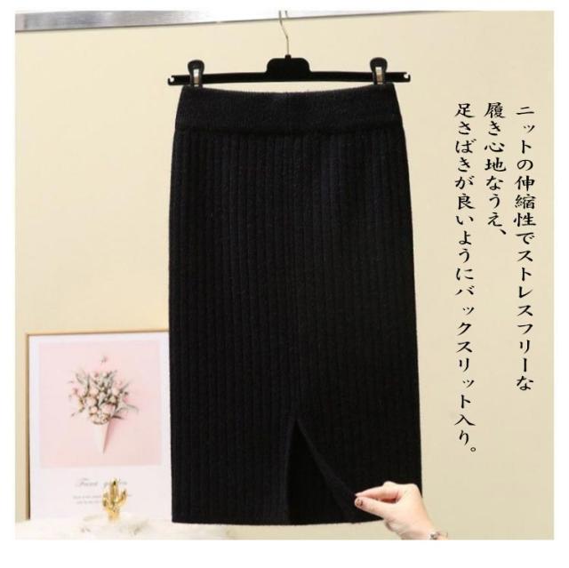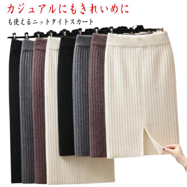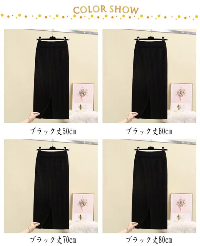 タイトスカート レディース スリット タイトスカート ナロースカート ペンシルスカート リブニット タイト ロングスカート 選べる着丈 ボトムス Iライン ウエストゴム オフィス 通勤