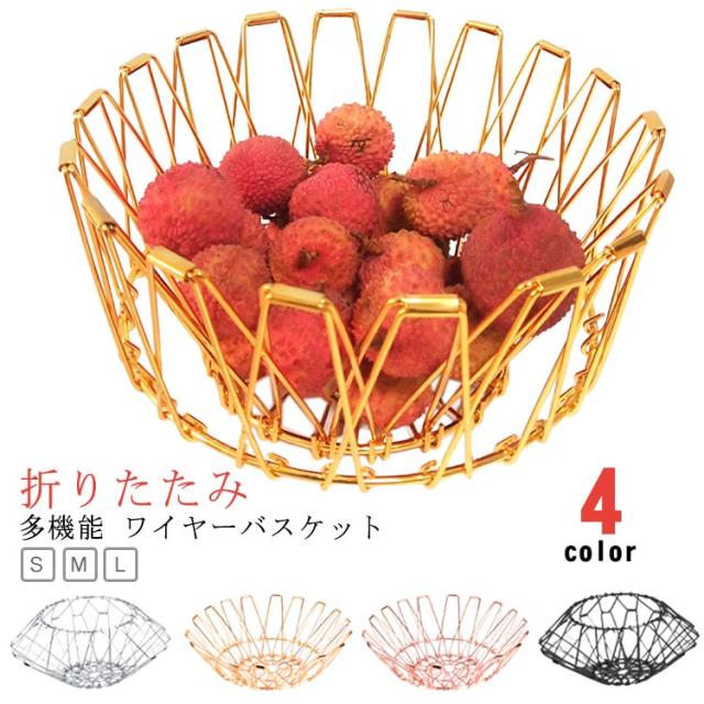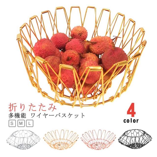 カゴ 変形バスケット お洒落 フルーツバスケット ゴミ箱 折りたたみ S 変形 大容量 フレキシブルワイヤーバスケット 鍋敷き 北欧 バスケット 変化に富む収納かご ディスプレイ 花瓶 フルーツトレイ 変形バスケット M