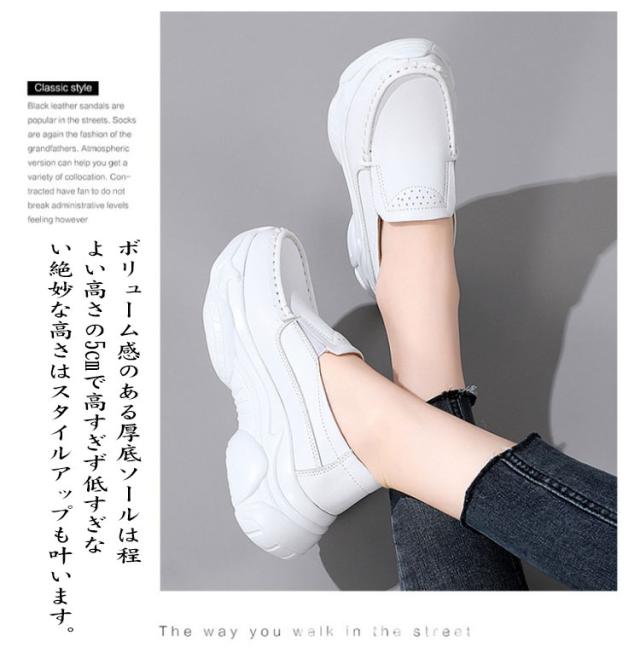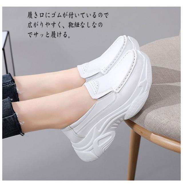 ウォーキングシューズ スリッポン 通勤 スニーカー 5cmヒール サイドゴア レディース 厚底 ホワイト 通学 厚底スリッポンシューズ 柔か 合皮