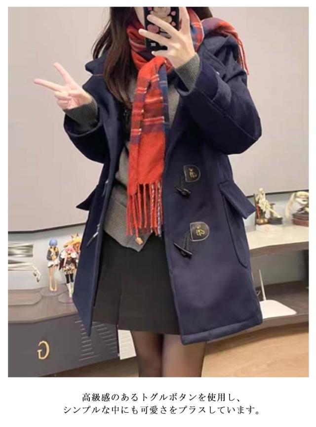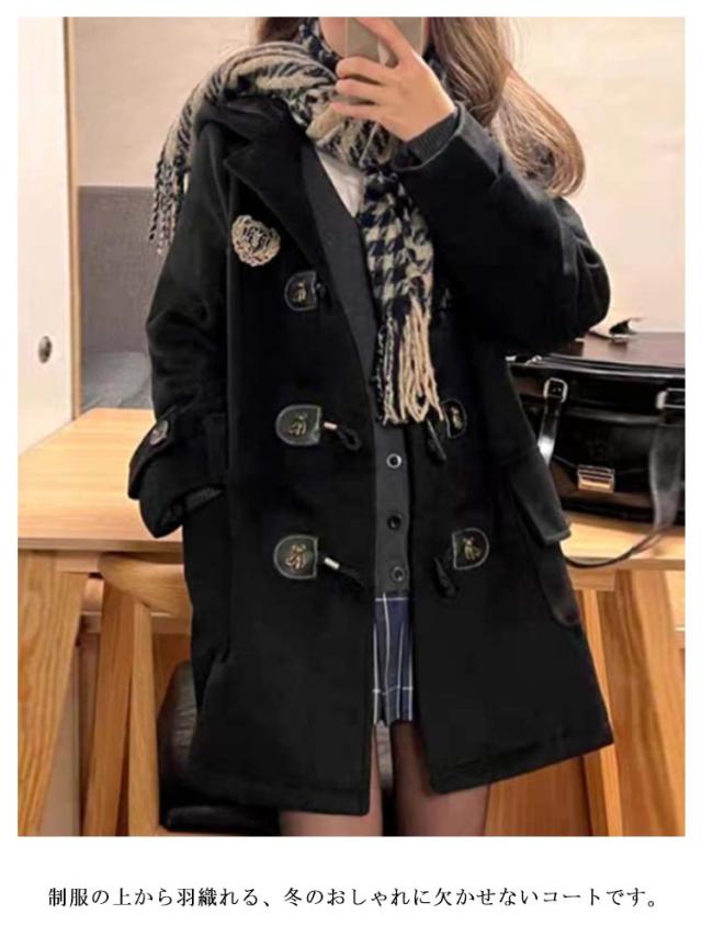 ダッフルコート 学生 ダッフルコート レディース 女子 制服 通学用 ロングコート スクールコート 学生制服 女子 高校生 中学生 ウールコート フード付き JK制服 フェイクウール トグルボタン ピーコート アウター あったか 秋冬
