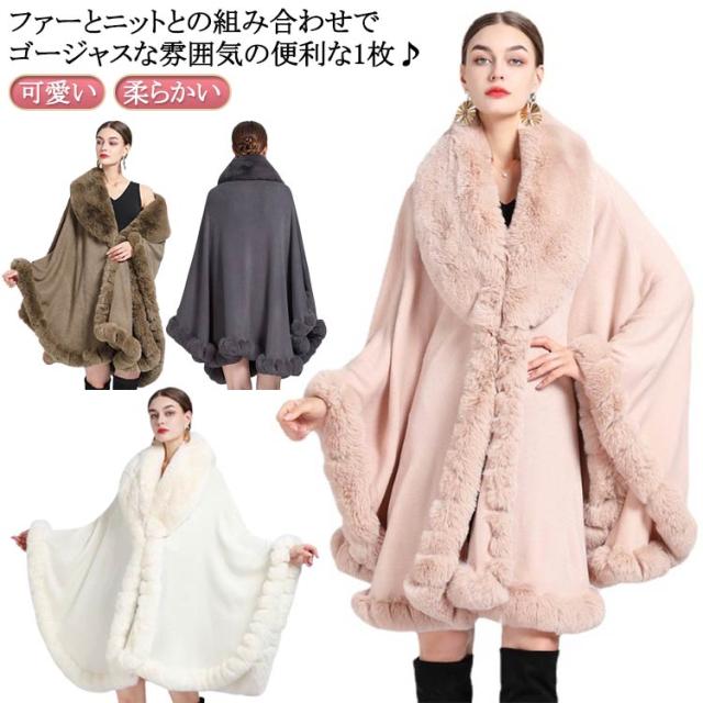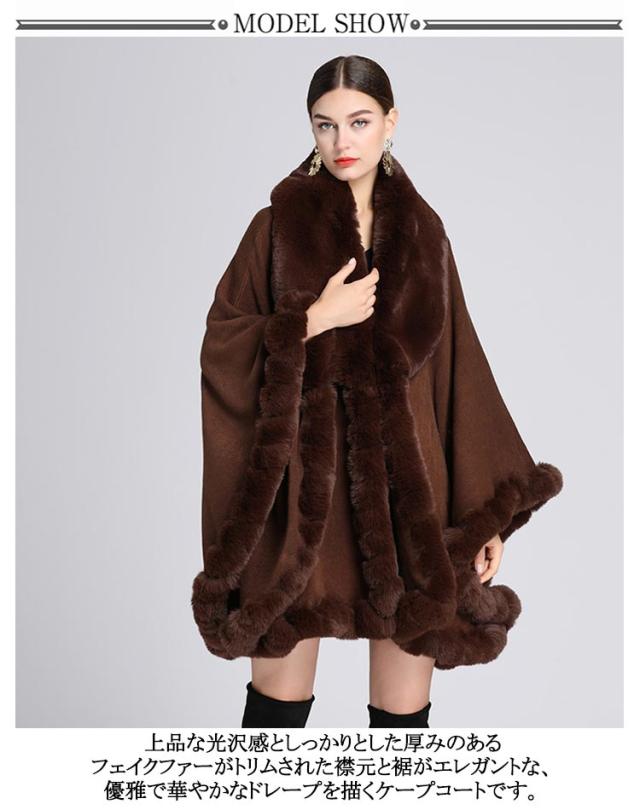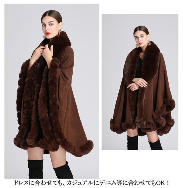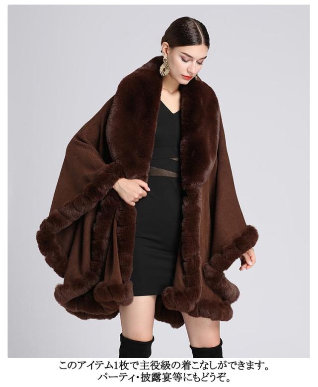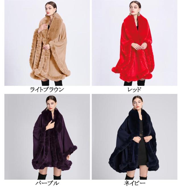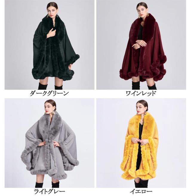 可愛い ファーポンチョ ポンチョコート 着物 ポンチョコート 柔らかい ボリューム ふわふわ 暖かい フェイクファー 秋冬 おしゃれ ファーコート パーティー アウター ケープ 披露宴 結婚式 二次会 30代 40代 毛皮コート
