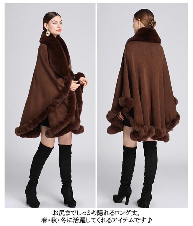 | 上品な光沢感としっかりとした厚みのあるフェイクファーがトリムされた襟元と裾がエレガントな、優雅で華やかなドレープを描くケープコートです。 ファーとニットとの組み合わせでゴージャスな雰囲気の便利な1枚♪ ドレスに合わせても、カジュアルにデニム等に合わせてもOK! このアイテム1枚で主役級の着こなしができます。 パーティ・披露宴等にもどうぞ。 お尻までしっかり隠れるロング丈。 春・秋・冬に活躍してくれるアイテムです♪ | |