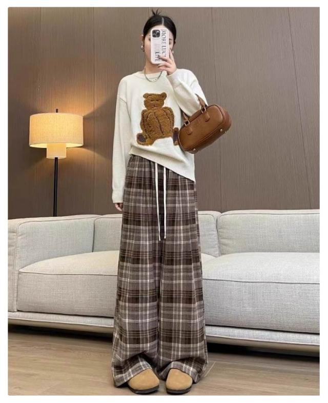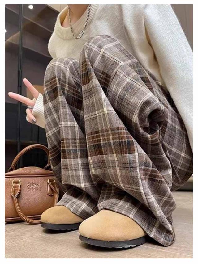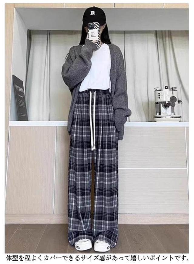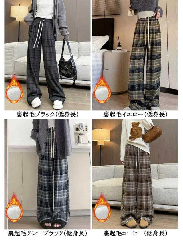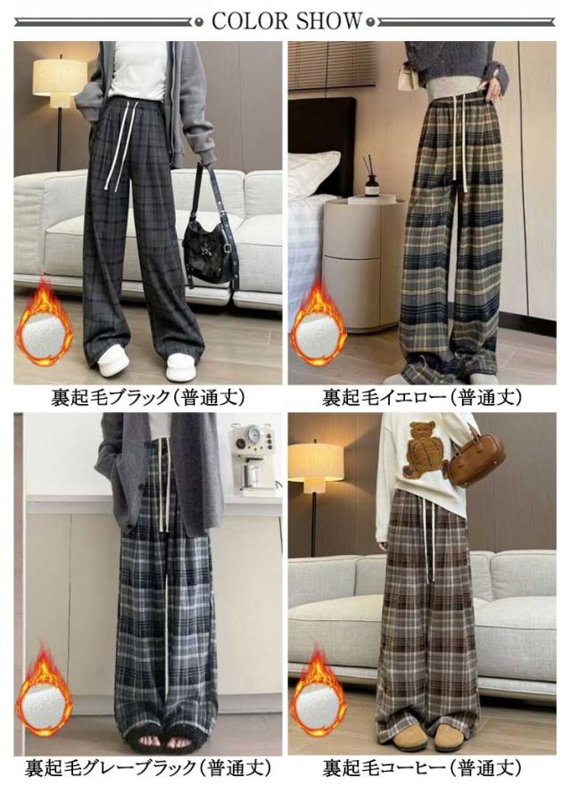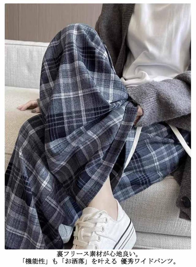 ワイドパンツ パンツ チェック 秋冬 ガウチョ 低身長 裏起毛 ワイド きれいめ パンツ ガウチョパンツ 大きいサイズ ロングパンツ ストレートパンツ ボトムス ウエストゴム ポケット付き チェック柄 カジュアル 美脚 チェック 高身長 ゆったり 体型カバー