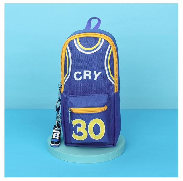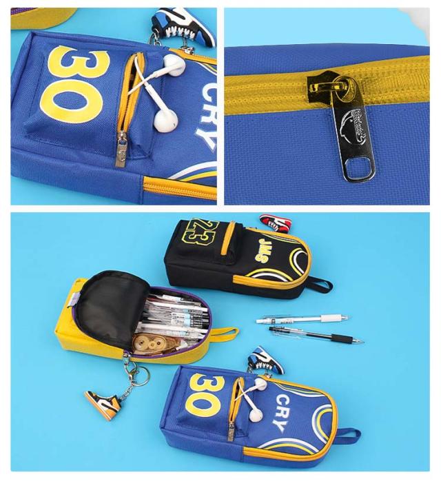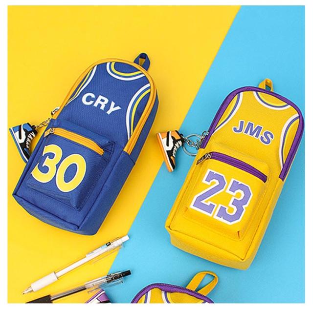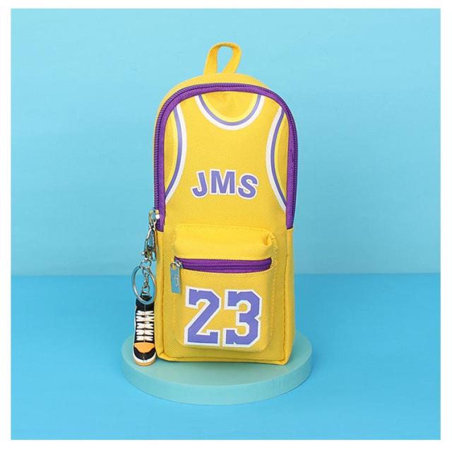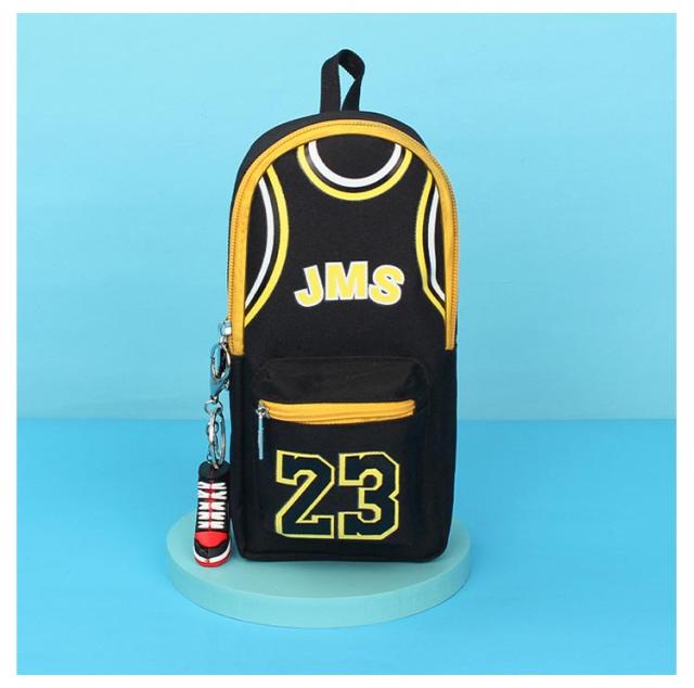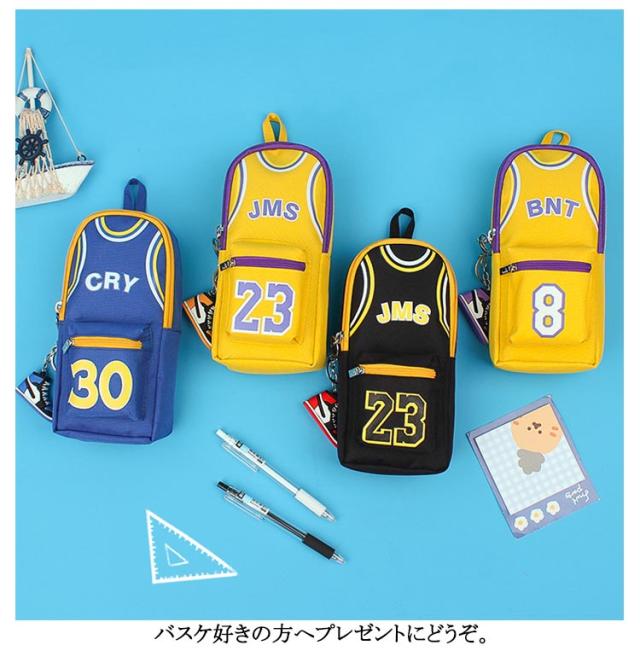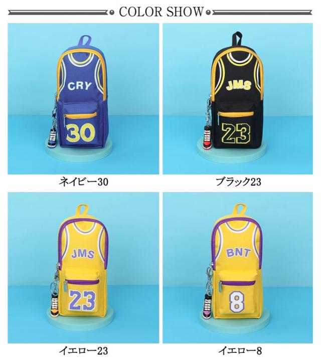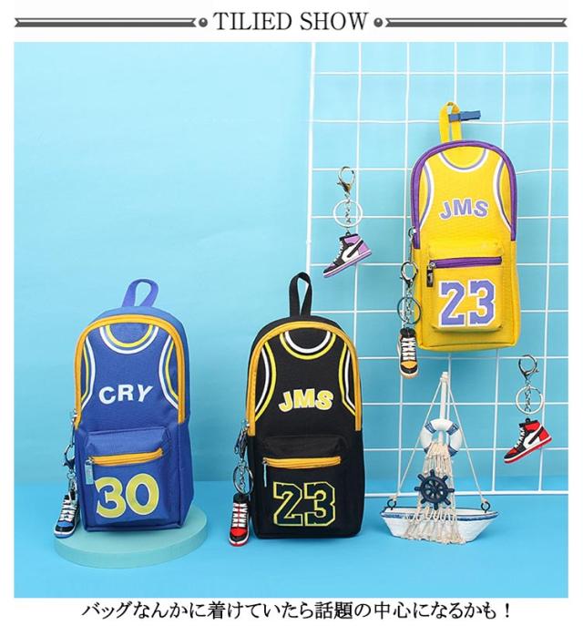 バスケ グッズ ペンポーチ 男の子 大容量 縦型 ファスナー ペンケース キャンバス バスケ おもしろ 筆箱 カラビナ付 キーホルダー付 ふでばこ 小物入れ ファスナー ポケット 持ち手 チャーム おしゃれ バスケットボール ユニフォーム チャーム付き ハンドル