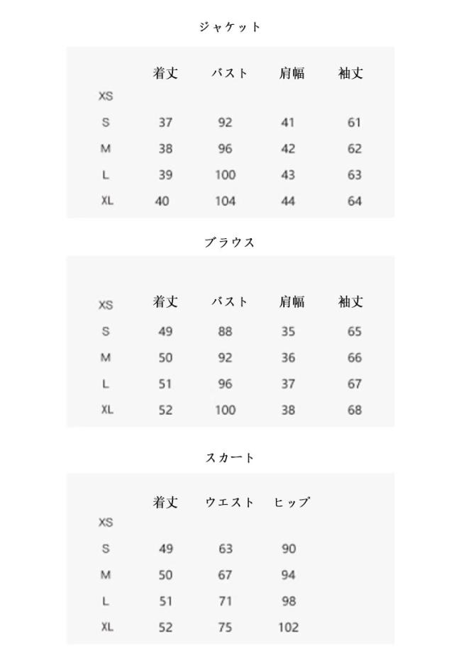 | サイズについての説明 | サイズ表は画像をご参照ください フォーマルスーツ3点セット:きれいめなブレザー、スカート、ブラウス(リボン或いネクタイ付)セットです。 |