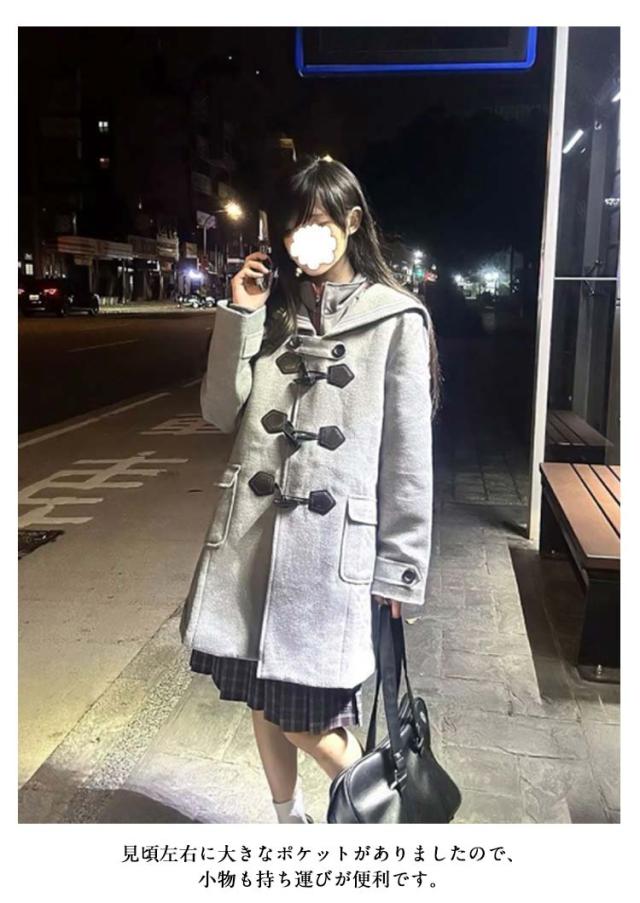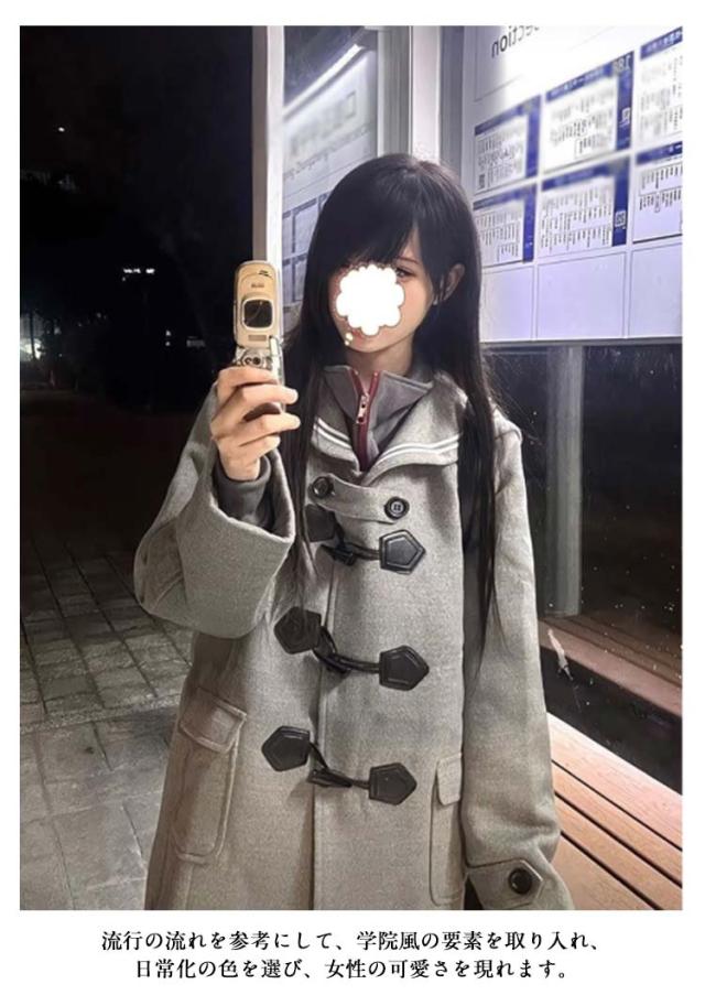 | 逆三角形を呈して、トレンドなデザインで小顔効果も期待できます。 マフラーを着たり、中に帽子をかぶったりしても、完全にカバーできます。 流行の流れを参考にして、学院風の要素を取り入れ、日常化の色を選び、女性の可愛さを現れます。 見頃左右に大きなポケットがありましたので、小物も持ち運びが便利です。 ふんわりとボディラインを隠してくれ、ヒップもすっぽりカバーするロング丈です。シンプルなデザインで色々な服にあわせやすいです。 セーターやベスト、ミニスカートなど組み合わせ、手軽にコーディネートできるおしゃれな秋冬コートです。万能なコートで、通勤も学校もお出かけもピッタリです。 | |