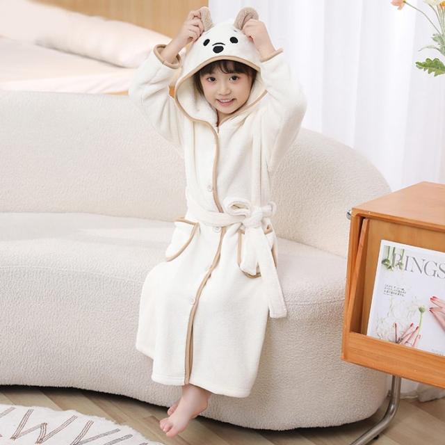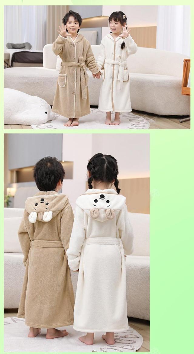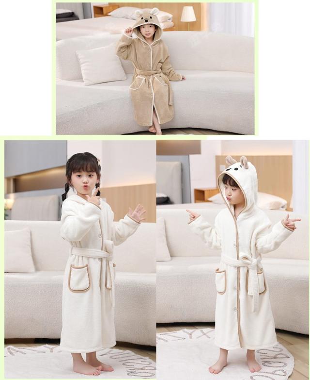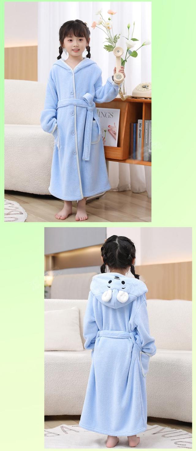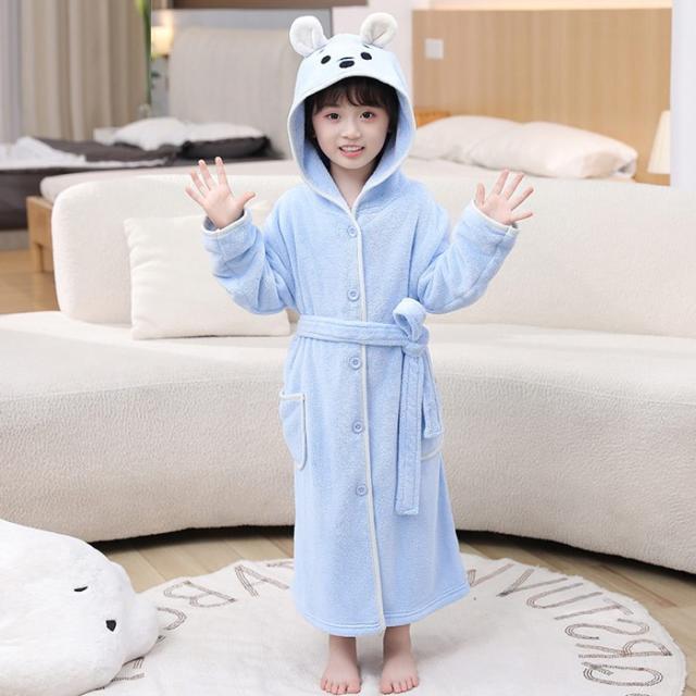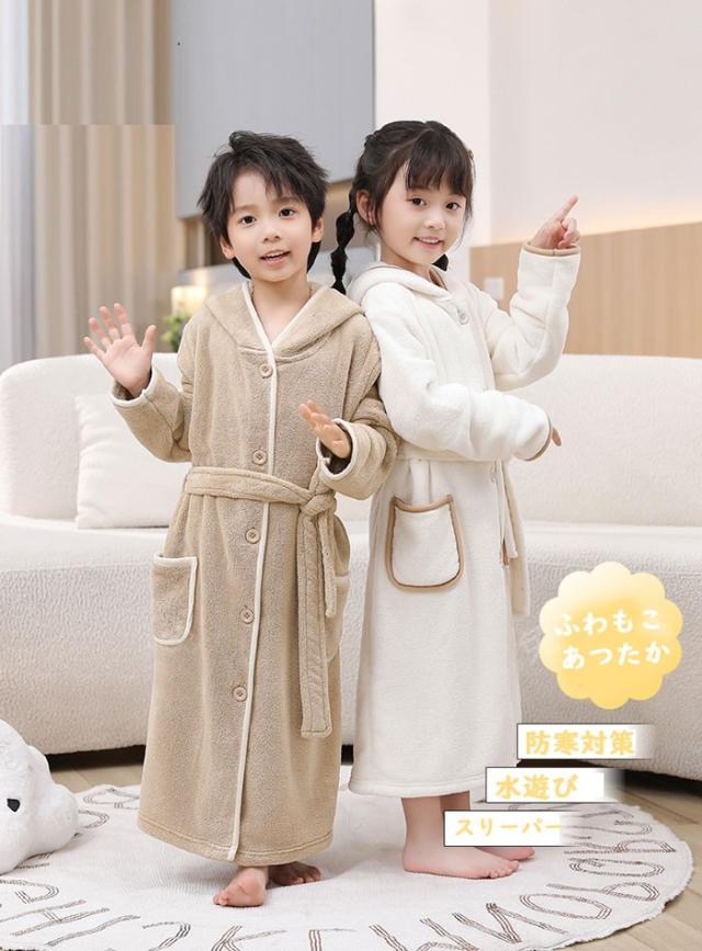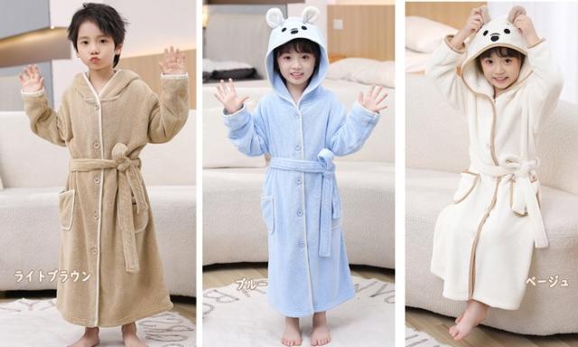 キッズ パジャマ バスローブ ガウン フード付き クマ ルームウェア ナイトウェア 前開き ベージュ ライトブラウン ブルー dt643c0cyh5 dt643c0