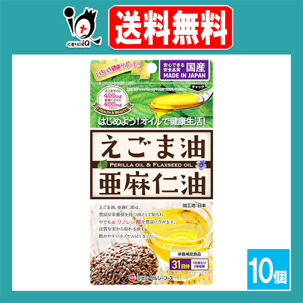 【栄養補助食品】えごま油と亜麻仁油 62球入×10個セット【ミナミヘルシーフーズ】はじめよう!オイルで健康生活!α-リノレン酸 オメガ3 健康オイルサプリ えごまオイル 亜麻仁オイル