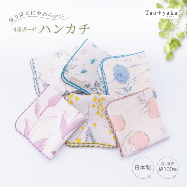 4重ガーゼハンカチ 日本製 綿100% 綿 25cm レディース 女性 大人 花柄 上品 かわいい やわらかい 薄手 ガーゼタオ