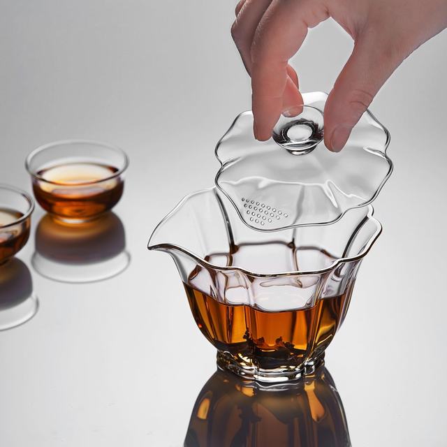 ●ティーポットは透明な耐?ガラスで作られており、内部の茶葉と茶色の水がはっきりと見えます。デザインはシンプルでモダンなスタイルで、端にはエレガントな曲線があります。蓋には細かいフィルター穴があります。ティーポットには広い注ぎ口があり、お茶を注ぐときに滴りにくいです。このガラス急須はウーロン茶や小青柑などの大きな葉の茶に適しています。細かい茶葉を使用する場合は、ティーバッグとの併用をお勧めします。