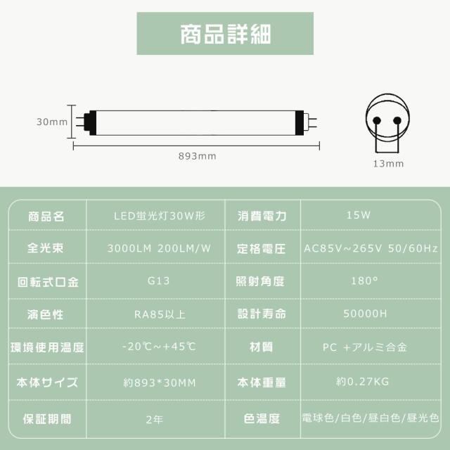 直管LEDランプ G13口金 LED蛍光灯 直管 30型 LED直管蛍光灯 30W型 LED蛍光灯 30W形 直管 グロー式 30型蛍光灯 LED 照明 グロー 工事不要 30W 消費電力15W 高輝度3000LM LED蛍光管30型 30形 天井照明 893MM FL30ss LED蛍光灯器具 93CM ベースライト LED 水銀ゼロ 施設照明 店舗
