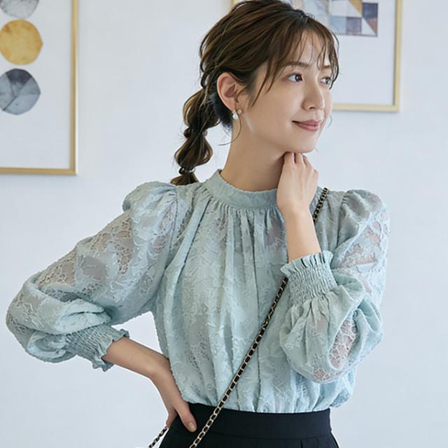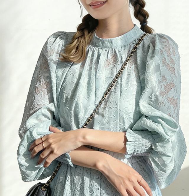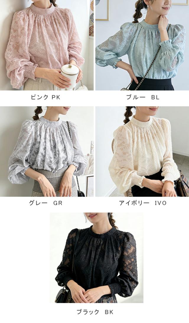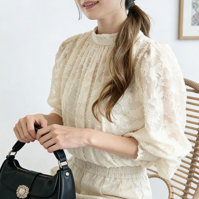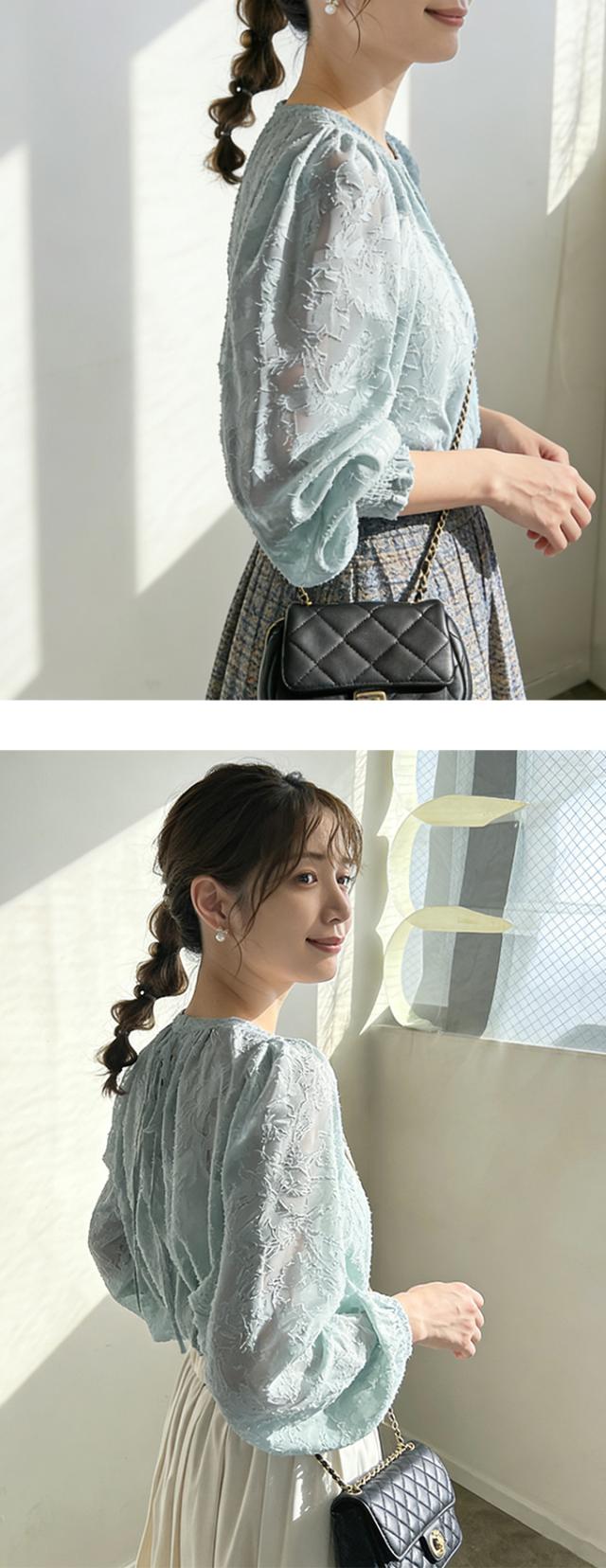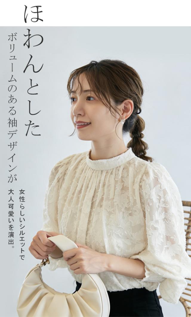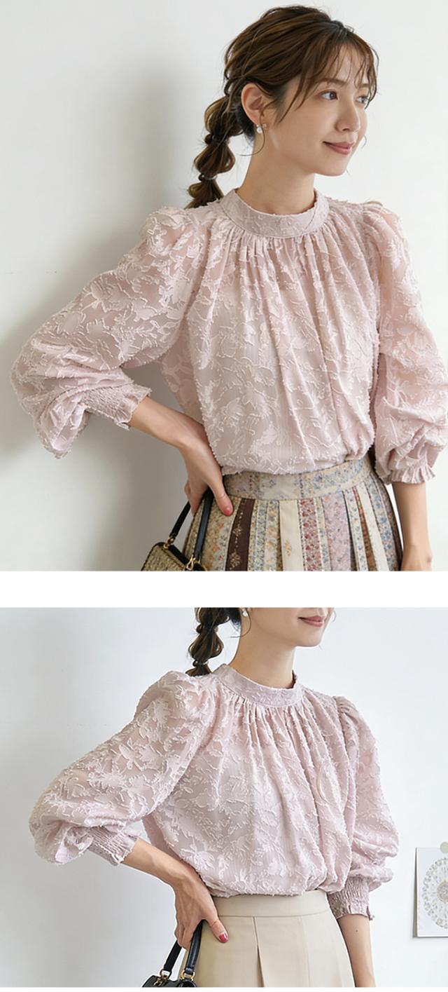 ジャガードシフォンブラウス ボリューム感トップス スタンドカラー レディース おしゃれ トップス シャツ ブラウス シアー ジャガード 花柄 オーバーサイズ 羽織り レイヤード ゆったり