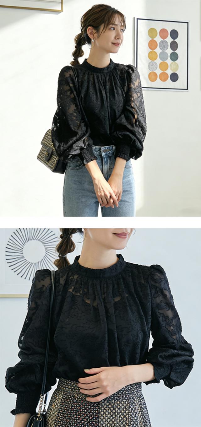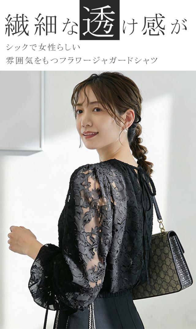 繊細な透け感が、シックで女性らしい雰囲気をもつフラワージャガードシャツ。