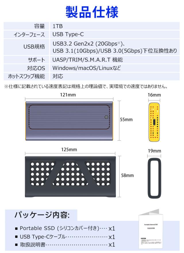 付属品:シリコン保護カバー、USB Type-C to Type-Cケーブル付き