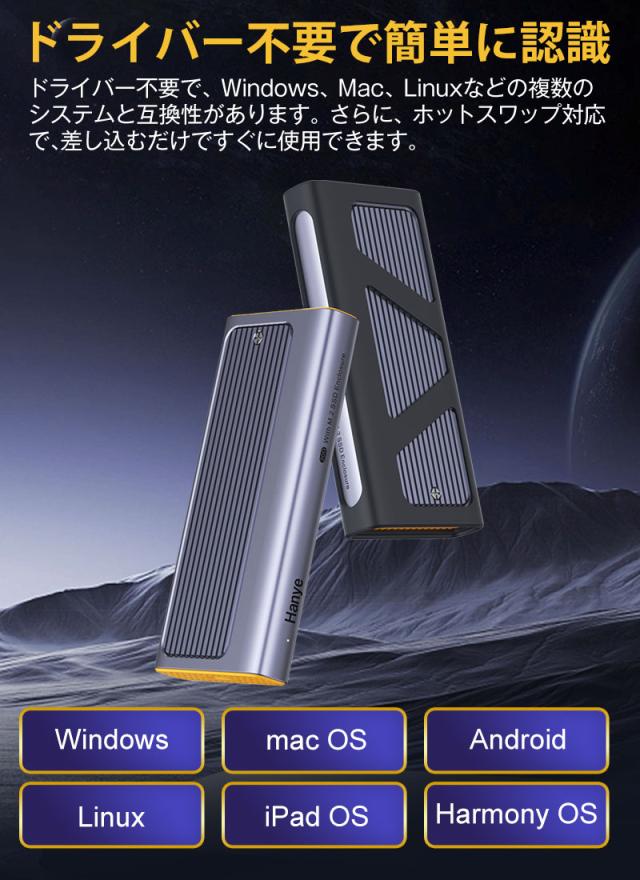 Windows、Linux、Mac OS、iOS、iPadOS、Android、HarmonyOSなどに対応しています。USB-Cケーブルが付属しているのでMacBook、デスクトップPC、ノートPC、スマートフォン、タブレットPC、およびType Cデバイスと高い互換性を持っています。