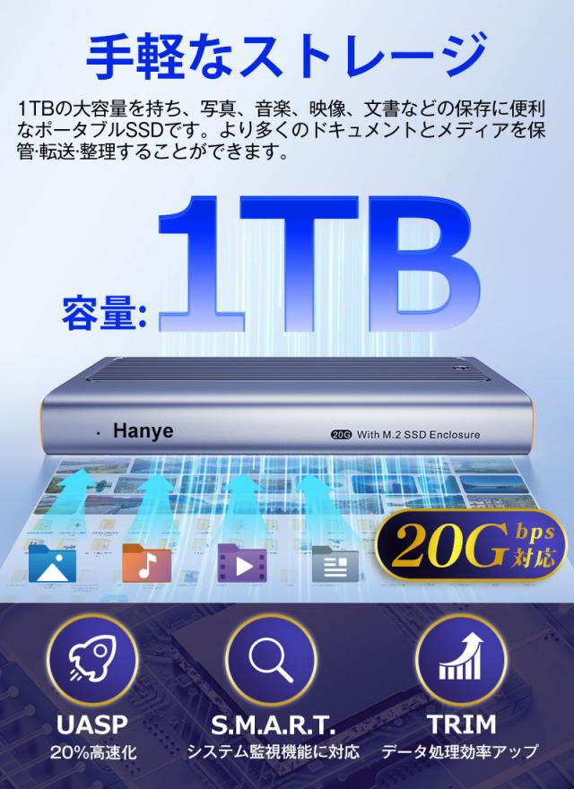 ポータブルSSD 外付けSSD 1TB USB 3.2 Gen2 20Gbps Type‐C Hanye Type C-C ケーブル シリコン保護カバー付き 3年保証 ネコポス送料無料 ポイント消化