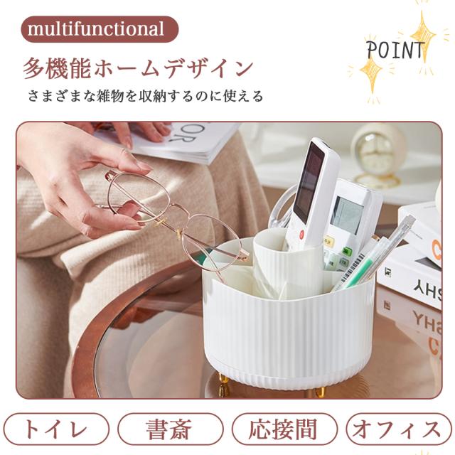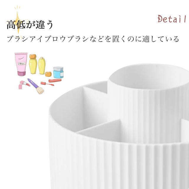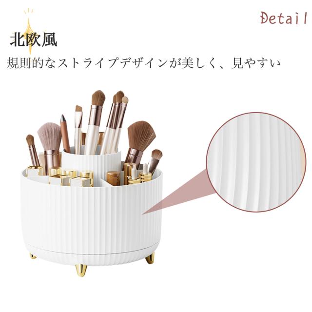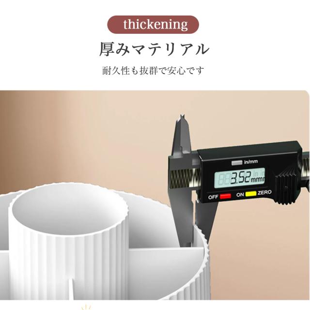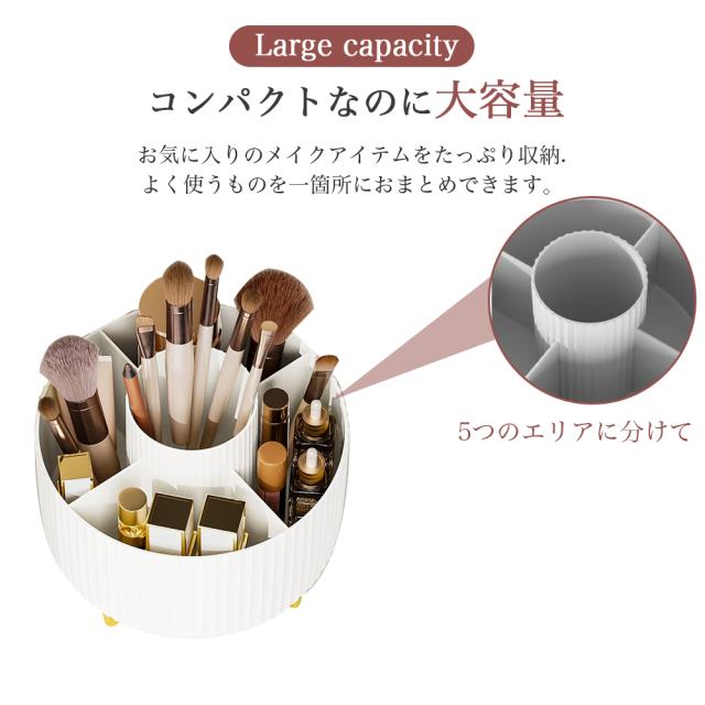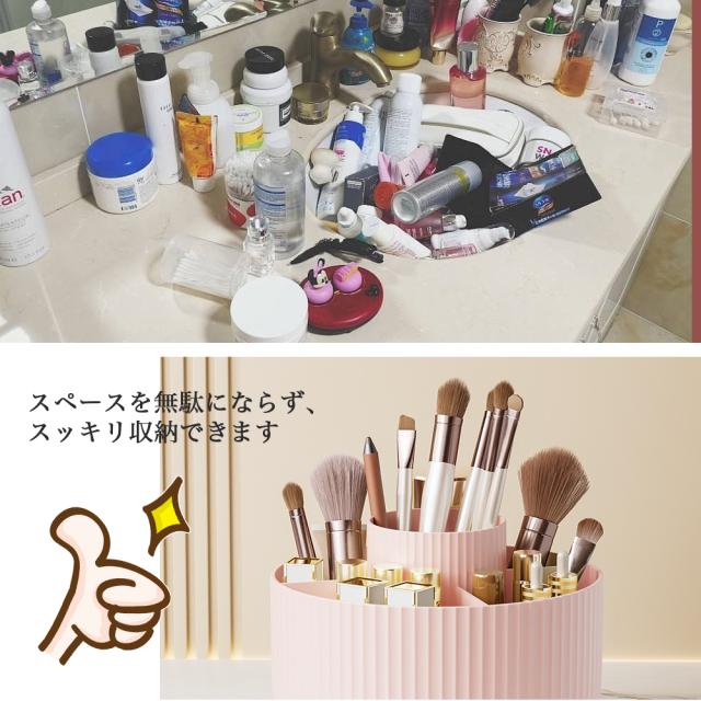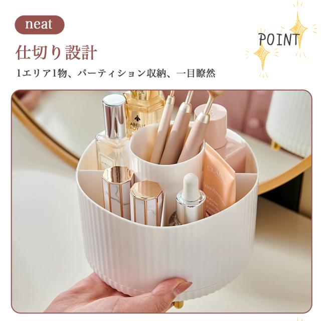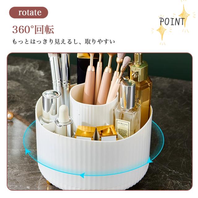 【回転式デザイン】360°回転式で、取り出しやすい。細かく仕切られている上部プレート、コスメやメイク道具など小物を整理して収納できる便利な卓上収納。