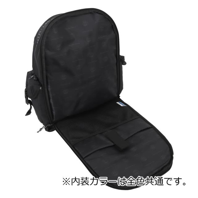 背面側:ダブルファスナー式開閉(内側:ベルクロ式クッションポケット×1