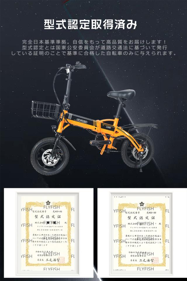 - 型式認定とは、道路交通法に適合し、国家公安委員会が定義した電動アシスト自転車の基準をクリアした商品に与えられる証明です。