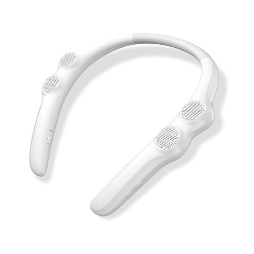 ・????まるで無重力最軽量ウエラブル bluetooth スピーカーネックスピーカーを選ぶコツは肩にのせるから、軽ければ軽いほど楽です本体僅か78gで、性能を確保しながら軽量化を実現しました。肩や首への負担を最小限に抑えられ、付けているのを忘れるほどの軽さです。首掛けスピーカーなので、イヤホンやヘッドセットのような耳への圧迫が一切なく、長時間使っても疲れません。耳の蒸れや痒みも一切ありません。????音を身につけるながら聴きに最適開放式のため環境音や呼びかけもしっかり聴きとれるので、周囲へ配慮しながら音楽を楽しめます。聴きながら周りの人との会話もスムーズにできます。bluetoothスピーカーとして通信距離は最大10mまで対応、場所に縛られず動き回りながら使えます。仕事/スポーツ/育児/家事など、音楽を楽しむシーンが広がります。IPX4防水仕様、少しの水滴や汗がついても大丈夫ですので、運動中やキッチンで作業中にも使えます。