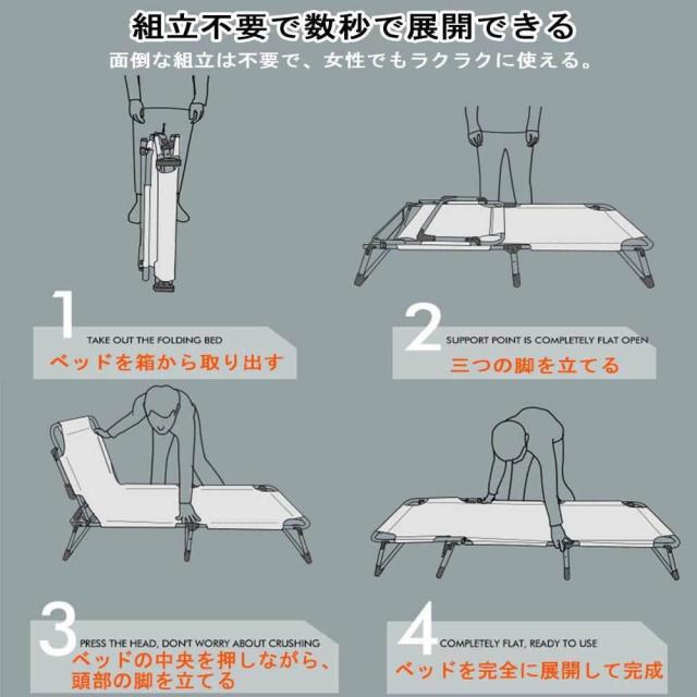 サマーベッド 簡易ベッド 折りたたみベッド 折り畳み コット チェア ベンチ キャンピングベッド リクライニング アウトドア ベッド キャンプ 幅67cm 組立不要 4段階調節 ワイド レジャー ビーチ 仮眠 防災 来客用 枕付き