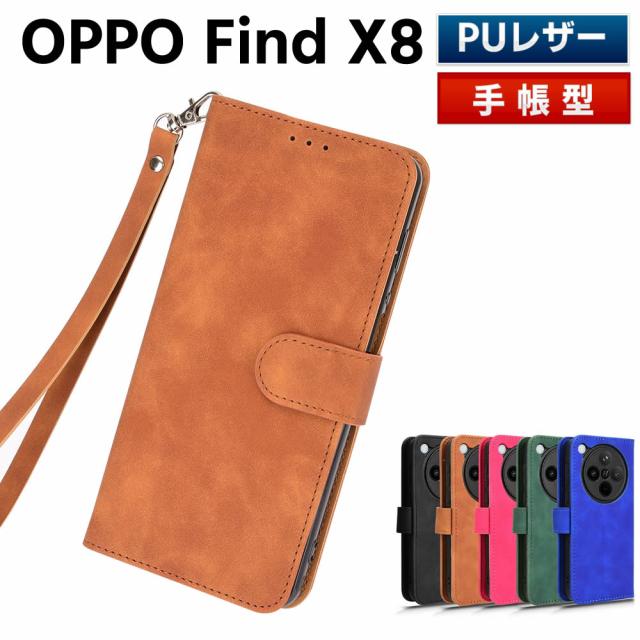 OPPO Find X8スマートフォンケース 手帳型ケース ストラップ付 二つ折りケース カバー マグネット 定期入れ ポケット シンプル スマホケース TPUケース スタンド機能 携帯ケース